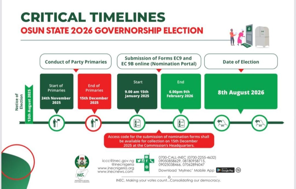 2026 EKITI AND OSUN GOVERNORSHIP ELECTIONS: INEC Announces Timetables
