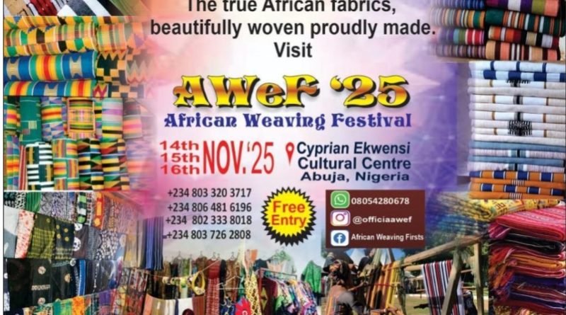 The Federal Capital Territory (FCT) Department of Culture and African Weaving Festival is set to host the 3rd edition of the African Weaving Festival (AWeF 2025), starting on November 14, 2025, in Abuja. The event’s theme, “African Indigenous Fabrics: A Tool for Culture Diplomacy and Unity”, aims to celebrate Africa’s rich textile heritage and promote cultural identity, creativity, and continental unity.
