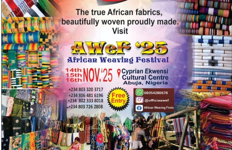 The Federal Capital Territory (FCT) Department of Culture and African Weaving Festival is set to host the 3rd edition of the African Weaving Festival (AWeF 2025), starting on November 14, 2025, in Abuja. The event’s theme, “African Indigenous Fabrics: A Tool for Culture Diplomacy and Unity”, aims to celebrate Africa’s rich textile heritage and promote cultural identity, creativity, and continental unity.