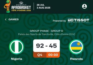 The Nigerian girls who headed into the competition with a boosted charge by the National Sports Commission, NSC, with an increased welfare package, wasted no time to lay down their mission in Abidjan, beating the Rwanda girls with a total of 92- 45 points at the Palais des sports de Treichville.