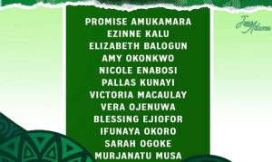 Also making the roster of the nation’s finest 12 are Murjanatu Musa, Victoria Macaulay, Elizabeth Balogun, Blessing Ejiofor, Ifunaya Okoro, Vera Ojenuwa, Nicole Enabosi, and Palla Kunayi.