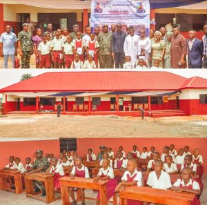The project, executed under the Chief of the Air Staff Special Intervention Project initiative, comprises a fully furnished block of three classrooms, a principal’s office, and staff rooms. It was undertaken in honour of an illustrious son of Akwa Ibom State, retired Air Vice Marshal Iboro Harry Etukudo. Representing the CAS at the event, the Chief of Civil–Military Relations, Air Vice Marshal Edward Gabkwet, described the intervention as a critical component of the NAF’s non-kinetic line of operations, emphasizing that such initiatives are instrumental in winning hearts and minds while fostering enduring trust between the military and the civil populace.