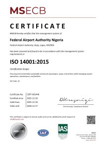 FAAN’s dual ISO certifications, ISO 9001:2015 for Quality Management and ISO 14001:2015 for Environmental Management, are game-changers for Nigeria’s aviation sector. These certifications confirm that FAAN’s operational processes meet global standards, ensuring efficient, safe, and customer-focused airport services while promoting sustainable environmental practices.