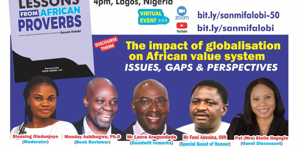 The session, which shall also feature Mrs Stella Ilegogie, family life coach and Associate Head Pastor at Lively Stones Assembly International -(LSAI) Kaduna is part of the 50th birthday celebrations and public presentation of the book, ‘Timeless lessons from African proverbs’ by Sanmi Falobi, notable NGO intraprenuer, Media & management consultant.