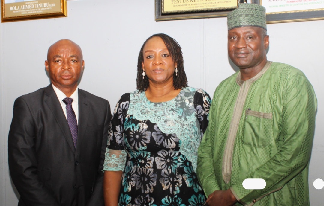 Cover Photo Caption: L-R: Director, Human Resource Management; Mr. Ejike Osibe; Managing Director/Chief Executive Officer Stransform Limited; Dr. Offiong Archibong and the Permanent Secretary, Federal Ministry of Aviation and Aerospace Development; Mahmud Adam Kambari FCNA FICA during the PASGA Close-Out Meeting.