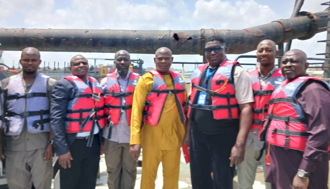 Cover Photo Caption: The Director, Maritime Services, Federal Ministry of Marine and Blue Economy, FMMBE, Mr. Oyinloye Adeola Meshack & Staff on board the dredger, SD Gumel for first- hand assessment of the Joint Venture operated by Lagos Channel Management Limited.