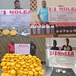 While commending the officers and men of the Ogun, Lagos, Apapa, Edo, Delta, Oyo, FCT, Enugu, and Kwara Commands for the arrests and seizures, Chairman/Chief Executive Officer of NDLEA, Brig. Gen. Mohamed Buba Marwa (Rtd) acknowledged their commitment and enjoined them as well as their colleagues nationwide to maintain the current tempo of their balanced approach to the Agency’s drug control efforts.