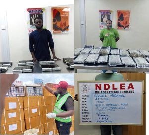 An international organized criminal group (IOCG), operating between Nigeria, UK, Brazil, Australia, and the United Arab Emirate has been smashed by operatives of the National Drug Law Enforcement Agency (NDLEA) who in a two-week-long intelligence-led operations across parts of Lagos arrested three leaders of the cartel after intercepting large consignment of cocaine concealed in textile materials and local charms going to Sydney, Australia at the Murtala Muhammed International Airport (MMIA) Ikeja Lagos.