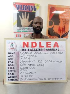 In a related development, NDLEA operatives at the import shed of the Lagos airport intercepted 2.90kg of “Loud,” a potent strain of cannabis, concealed in snack packs arriving from the United States aboard a Delta Air Lines flight on April 8.