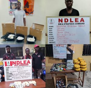 – In Abuja, three dispatch riders were arrested for distributing illicit substances, including 149.8 grams of Canadian Loud, a strong strain of cannabis.
