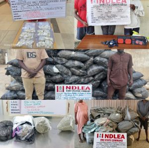 Elsewhere, a couple — Izuchukwu Azubuike, 37, and Ifunaya Mmadueke, 32 — were arrested at Umuaka, Njaba Local Government Area of Imo State with 203 kilograms of skunk, while 420 kilograms of skunk were recovered from a bush at Ikun Akoko, Ondo State, on Friday, 6 February.