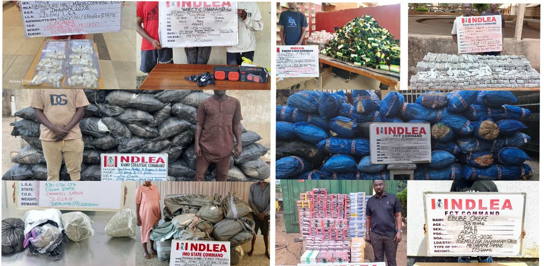 At the Yekeme jetty, Badagry, Lagos State, operatives of the Marine Command seized 31 wraps of cocaine concealed in a handbag from a suspect, Eze Nodebechi Austin, upon his arrival from Côte d’Ivoire on Friday, 6 February. In Lagos Island, Adekunle Oluwatosin Olajide was arrested with 3.6 kilograms of Canadian Loud and Colorado, while in Enugu, Emeka Okeke, 37, was apprehended at his hideout in Asata, Ezeagu, with quantities of skunk, methamphetamine, cocaine, molly, and ₦457,700 in cash.