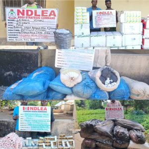 While commending the officers and men of MMIA, AIIA, Lagos, Kwara, Abia, Nasarawa, Kogi, Ondo, Anambra, Taraba, Kaduna, Seme and Zamfara Commands for the arrests, and seizures, Chairman/Chief Executive Officer of NDLEA, Brig. Gen. Mohamed Buba Marwa (Rtd) urged them and their colleagues across the country to continue with the ongoing balanced approach to the drug control efforts of the Agency