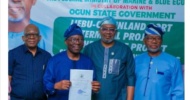 The Acting Managing Director, Nigerian Ports Authority (NPA), Mohammed Bello-Koko (left) presenting the Authority’s plaque to the Vice President of Nigerian Institute of Shipping (NIS), Segun Elufioye-Johnson during a courtesy visit to the Management of NPA at the Corporate Headquarters in Lagos.