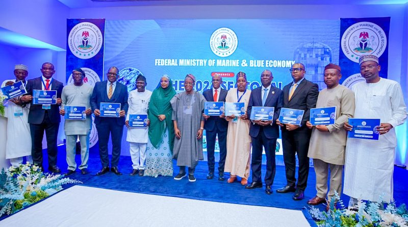 Cover Photo Caption: Minister of Marine and Blue Economy, Dr. Adegboyega Oyetola (6th from left), Permanent Secretary of the Ministry, Mrs. Fatima Mahmood (5th from left) and Heads of Government Agencies under the Ministry during the signing of the 2026 performance bonds between the Minister and heads of maritime agencies in Lagos on Thursday.