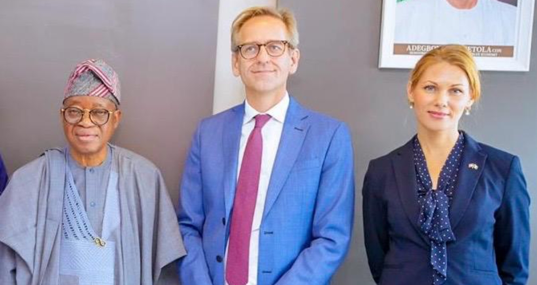 Cover Photo Caption, L-R: Honourable Minister of Marine and Blue Economy, His Excellency Dr Adegboyega Oyetola, CON; Ambassador of Denmark to Nigeria, Mr Jens Ole Bach Hansen, and Head of Commercial, Royal Danish Consulate, ⁠Sara Ibru, when the Danish Ambassador visited Minister Oyetola in his office in Abuja on Tuesday.