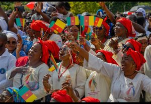 The Pontiff was received at the Nsimalen International Airport in Yaoundé by government officials, Catholic bishops, and thousands of enthusiastic worshippers who gathered to welcome him with songs, prayers, and traditional displays.